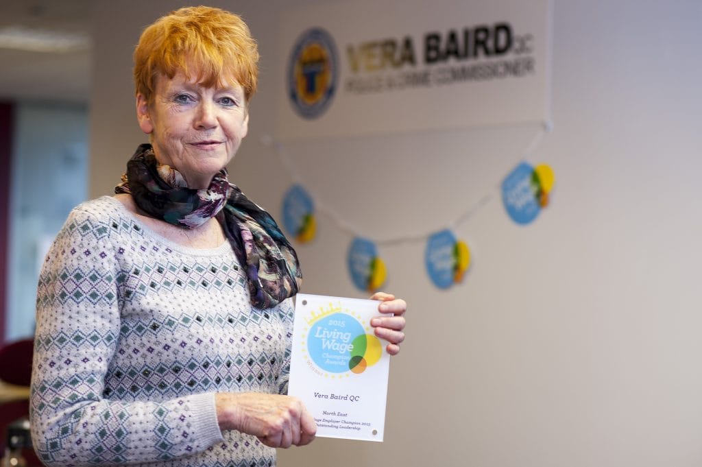 Northumbria Police and Crime Commissioner, Vera Baird, has been chosen as the winner of the Living Wage Leadership Award 2015 for the North East region.